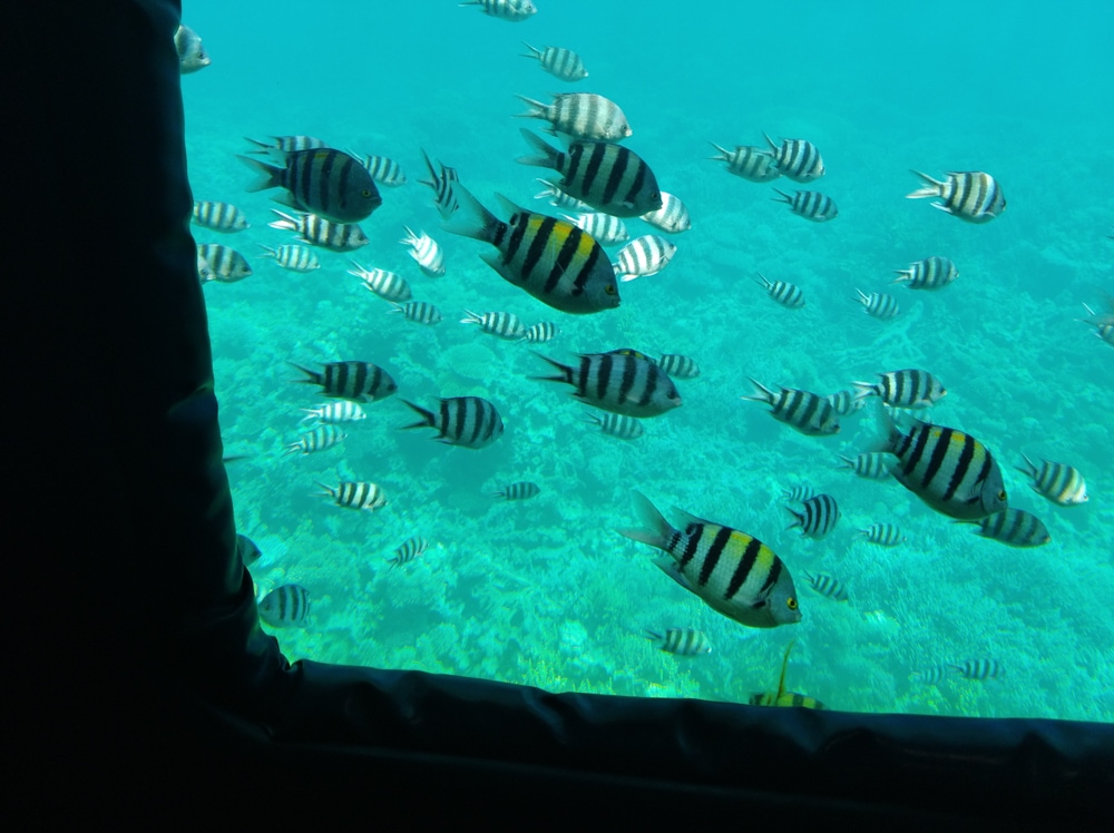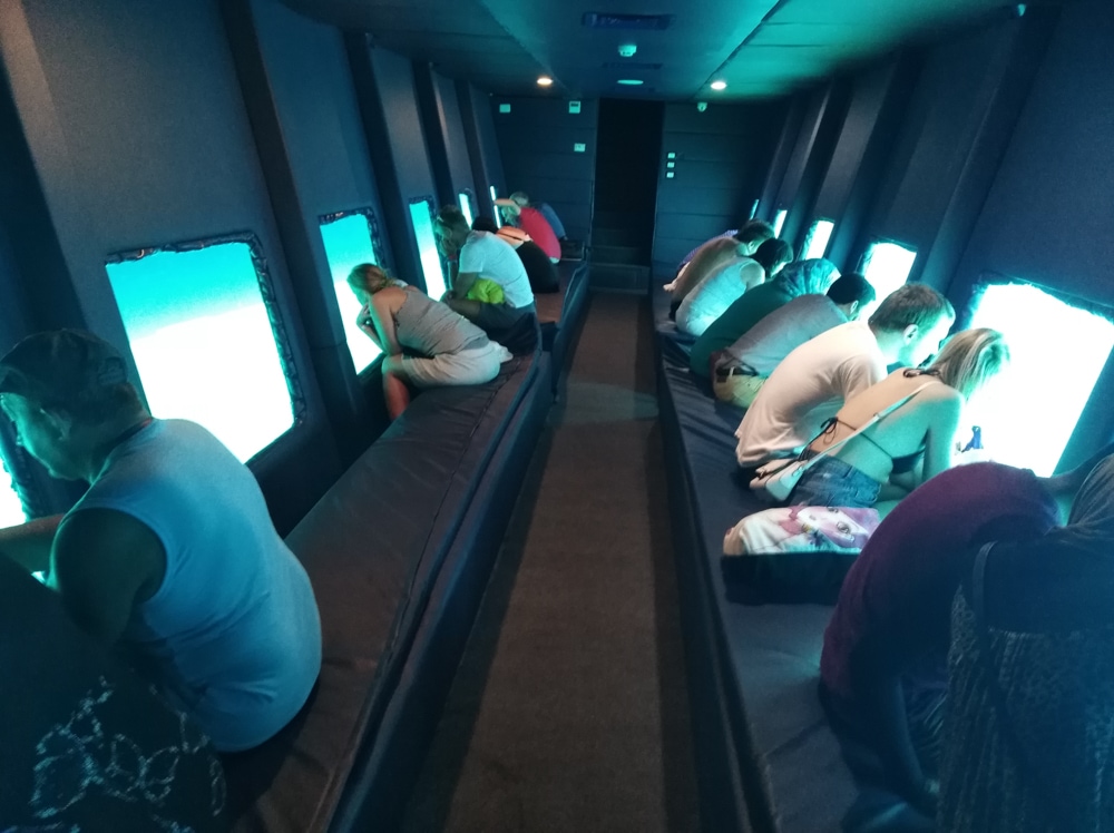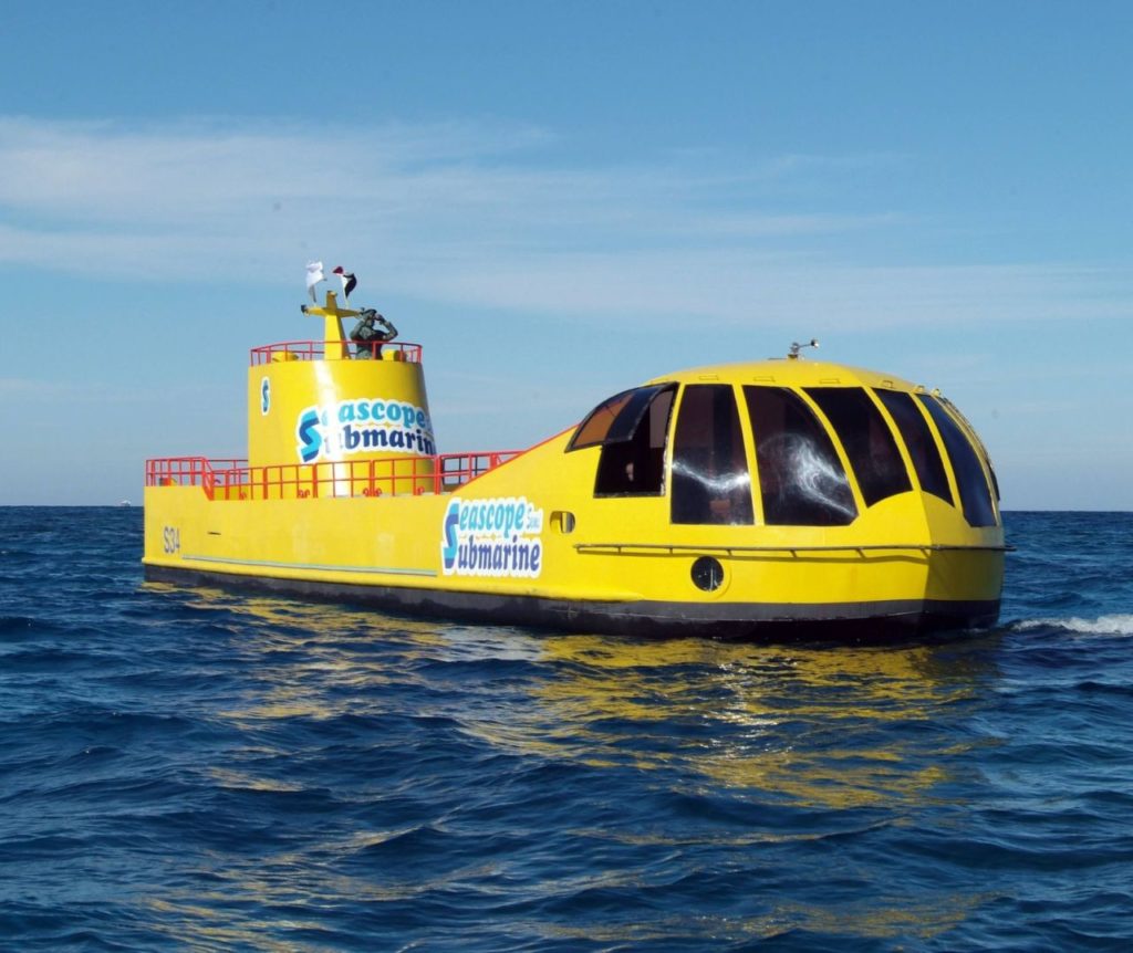 Тур вихідного дня проходить на човнах типу Sea Scope, які занурять вас під воду. Це сучасні і комфортабельні човни з кондиціонерами. За своєю конструкцією вони нагадують підводні човни. Але насправді човен залишається на поверхні, а його дно на 4 метри опускається під воду. Через великі панорамні вікна ви зможете милуватися багатим підводним царством найчистішого моря в світі. Човен Sea Scope — прекрасна альтернатива дайвінгу. Така екскурсія стане кращим варіантом для туристів з дітьми. Малюки будуть в захваті, адже таку поїздку не порівняєш з відвідуванням штучних акваріумів. З усіх боків вас буде оточувати справжнє море, а вільні морські мешканці будуть зайняті своїми повсякденними справами, пропливаючи повз вас. Також ви побачите красиві коралові рифи. Царство Посейдона дивовижне і варте того, диби хоч раз в житті погостювати там. У нас є два варіанти екскурсії, розраховані на дві або на три години. Можливі зупинки для купання. Ви не пошкодуєте, якщо вирішите зробити таку підводну подорож. Емоцій і вражень від побаченого вистачить надовго.