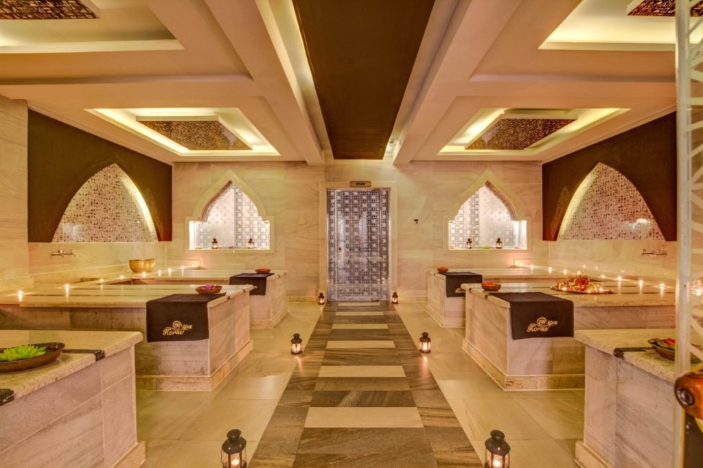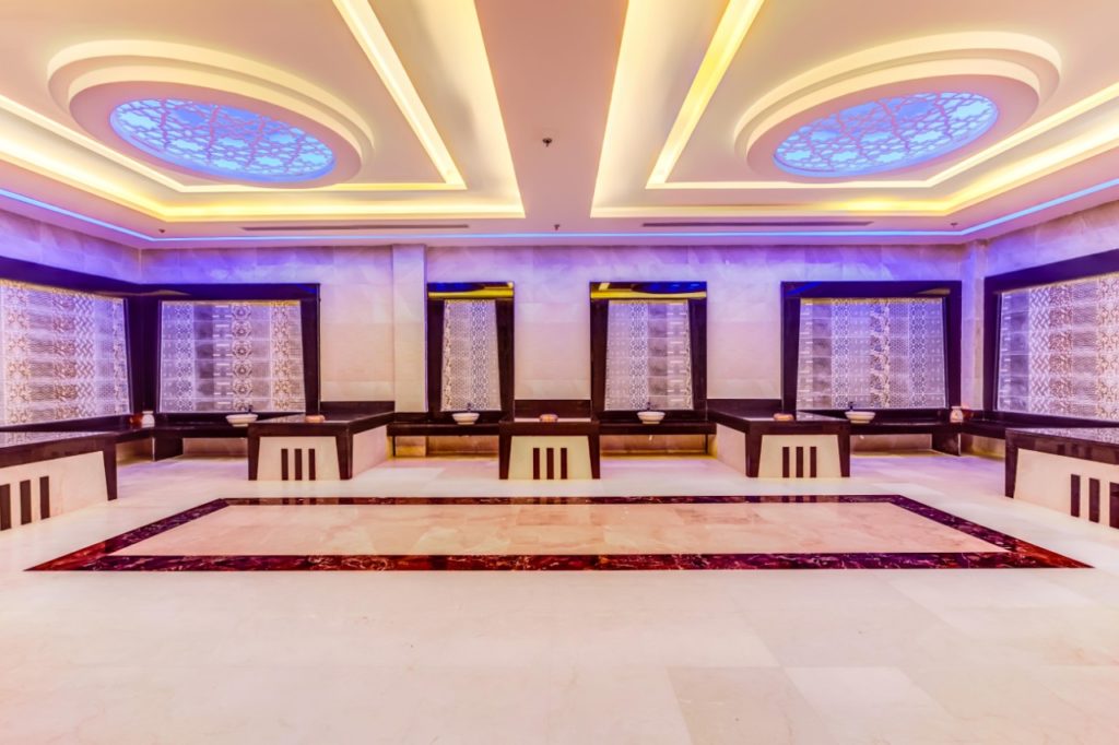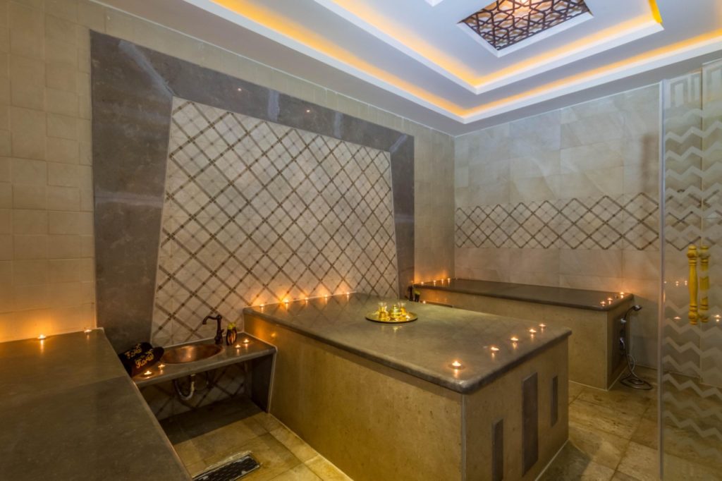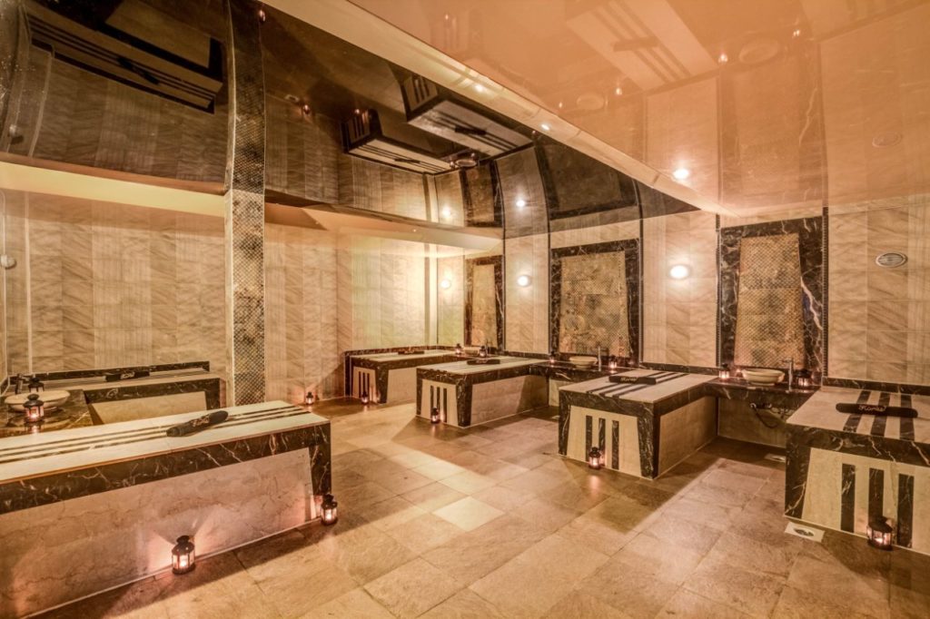 Хаммам включає цілий комплекс процедур: сауну, пілінг, масаж. Температура в турецькій лазні не дужевисока — зазвичай не більше 80 градусів, а тепло передається тілу вологою парою. Ви приємно розпарюєтеся і розслабляєтеся на гарячій мармуровій плиті. Ваше тіло стає м’яким, податливим, а шкіра — еластичною. Ви відчуваєте справжню насолоду. Потім робиться пілінг, в результаті якого ефективно видаляється ороговіла шкіра. І, нарешті, пінний масаж – пік задоволення.