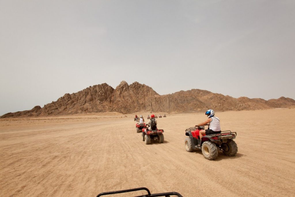 Це захоплююча пригода почнеться з поїздки на джипі в пустелю. Далі подорож триватиме на квадроциклах, під час якого ви побачите справжній міраж і зможете покататися з піщаних дюн. Попереду — запам’ятовує зустріч з бедуїнами, які запропонують мандрівникам відпочити і покуштувати ароматного чаю, катання на квадроциклах, баггі (спортивному автомобілі) і верблюдах. У насичену програму також включено відвідування міні-зоопарку, тераріуму.