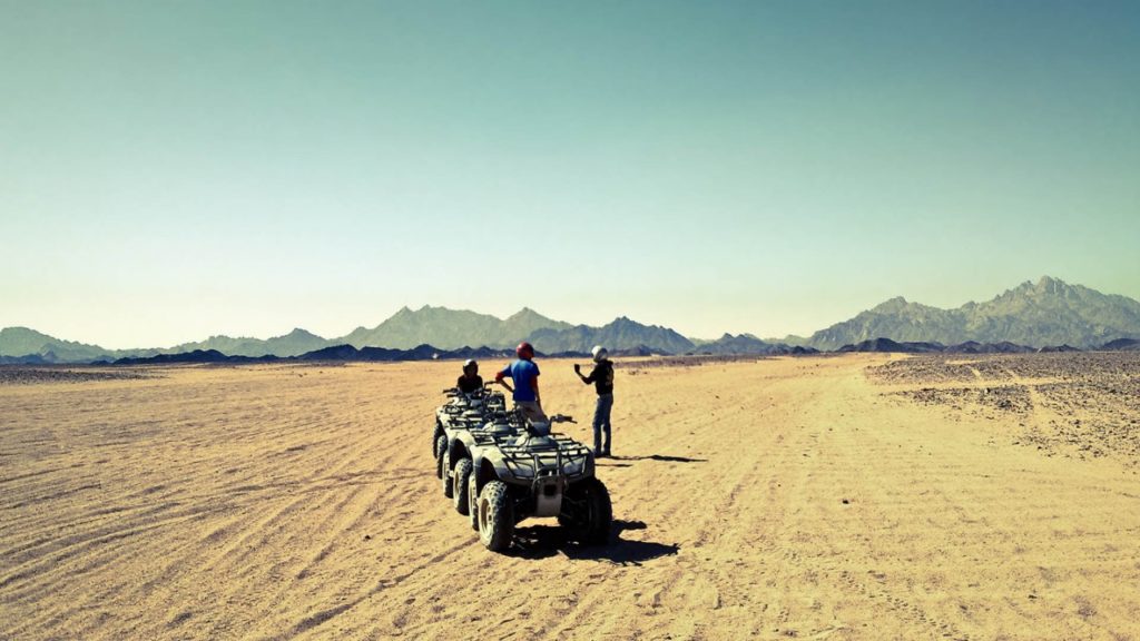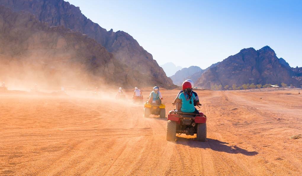Ця захоплююча пригода почнеться з поїздки на джипі в пустелю. Далі подорож триватиме на квадроциклах, під час якої ви побачите справжній міраж і зможете покататися з піщаних дюн. Попереду – пам’ятна зустріч з бедуїнами, які запропонують мандрівникам відпочити і зкуштуваи ароматного чаю, катання на квадроциклах, баггі (спортивному автомобілі) і верблюдах. В насичену програму також включено відвідування міні-зоопарку, тераріуму.