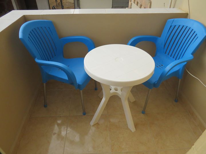 На балконі обладнано прекрасне місце для відпочинку.